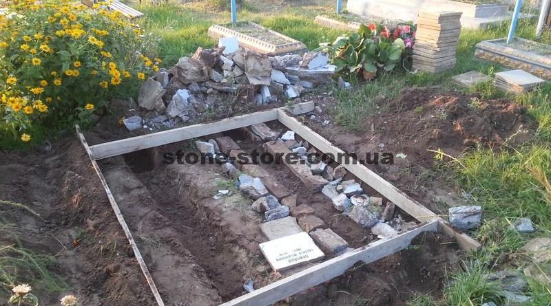 Виконано демонтаж старих пам’ятників та встановлено опалубку для нового фундаменту. Частково рештки від старого фундаменту використали як подушку для нового армованого фундаменту. Металева конструкція зі старого пам’ятника та масивний металевий хрест були порізані та вкинуті в бетон під час заливки. Як кажуть в народі: “Щоб нічого не пропало”.